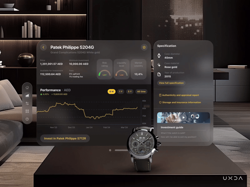 Tangible investments (like art or cars) displayed as immersive objects you can explore and customize.