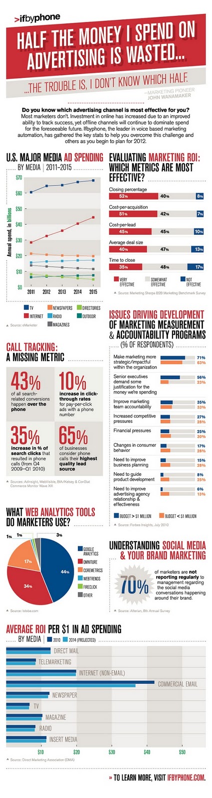 Based on just released research from Ifbyphone, those may have been the 'good old days'. The report, 2011 State of Marketing Measurement Report found that, while 82% of CMOs expected every campaign to be measured (what's up with the other 18%), only 29% of the marketers believed they could effectively measure ROI of each channel.